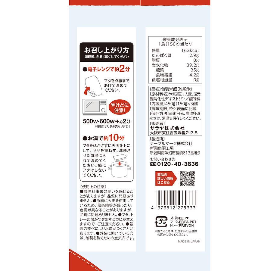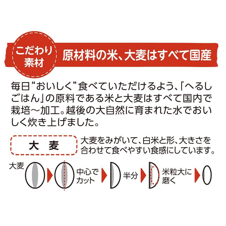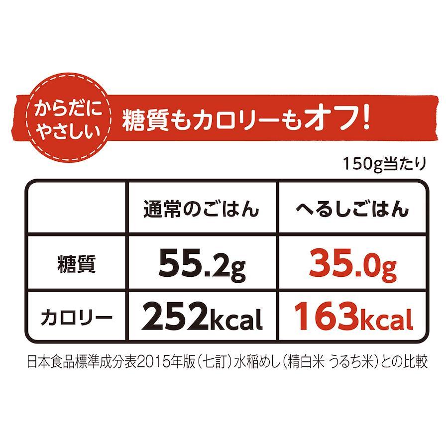 高アミロース米(白米の品種)、白米、大麦(大麦をみがいて、白米と同じ形、大きさをあわせて食べやすい食感)の3種をブレンドした炊飯パック米。カロリー35%オフ、糖質36%オフ、1食あたり食物繊維4.2g。※日本食品標準分析表 2015年度版(七訂)精白米との比較。電子レンジで約2分、お湯で約10分簡単調理。原材料:米(国産)、大麦、還元難消化性デキストリン/酸味料直射日光、高温多湿をさけ、常温で保存してください。【重要】メーカーによる商品リニューアルに伴いパッケージ(内容量も含む)変更が行われた場合、新パッケージでお届け致します事ご了承願います。