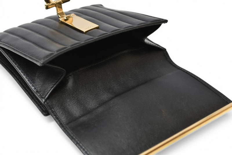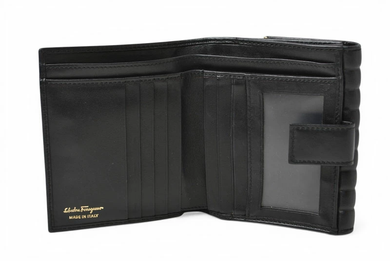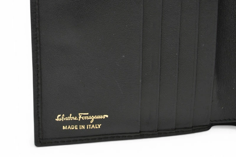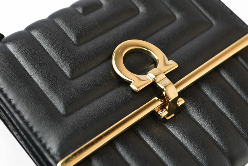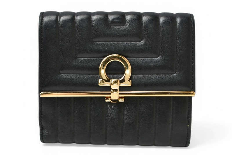 | 商品説明 | Salvatore Ferragamo(サルヴァトーレフェラガモ)の定番人気モチーフ ガンチーニ(GANCINI) をあしらった三つ折り財布です。 上質なブラックレザーに、フェラガモを象徴するガンチーニ金具が映える、シンプルかつ上品なデザイン。コンパクトな三つ折りタイプながら、札入れ・小銭入れ・カードポケットを備え、日常使いに十分な収納力を確保しています。 飽きのこないデザインで、メンズ・レディース問わず使用可能。ビジネスシーンからカジュアルまで幅広く活躍する、長く愛用できる折財布です。 |