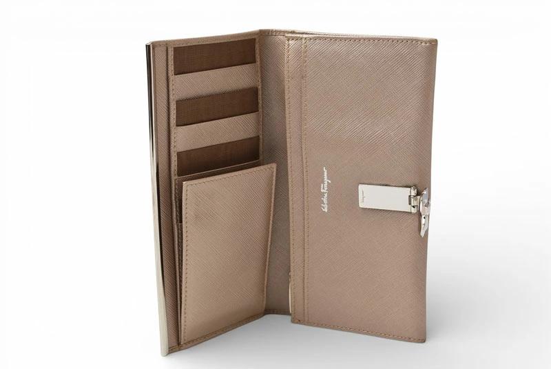 | 商品説明 | Salvatore Ferragamo(サルヴァトーレ・フェラガモ)のガンチーニモチーフをあしらった財布です。ブランドアイコンであるガンチーニがさりげなくデザインされ、上品さと高級感を演出。コーディネートのアクセントとしても映えるカラーです。とっても機能性に優れたお財布で、ポケットがたくさんあり、充実の収納です。日常使いからビジネスシーンまで幅広く活躍。フェラガモらしい洗練されたデザインを楽しめる一品です。 |