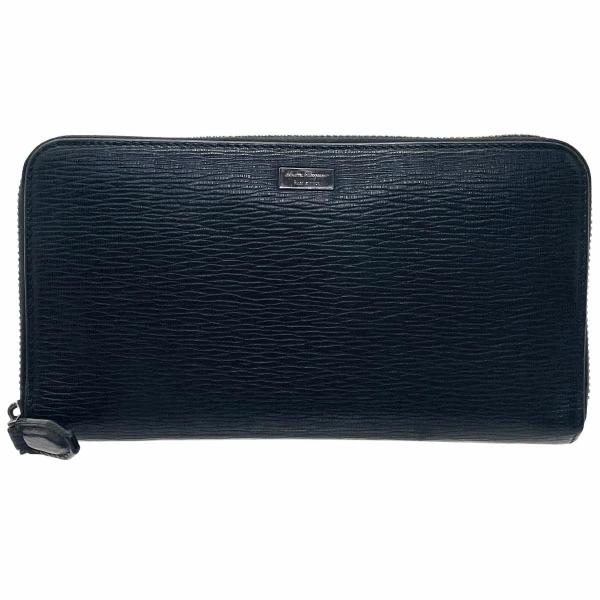 サルヴァトーレ フェラガモ 長財布 ロゴプレート ラウンドファスナー長財布 レザー 革 ブラック 黒 66 9102 Salvatore Ferragamo オーガナイザー 財布 ロングウォレット ウォレット サイフ メンズ 紳士 男性 【中古】