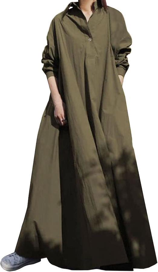 Aライン 体型カバーのワンピースで、落ち着いたデザインなので、多くのシーズンでも着まわし出来ます。