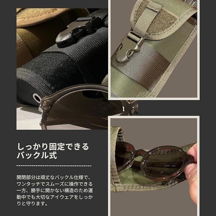 「アウトドア・サバゲーに最適」 サバイバルゲームやアウトドア活動に最適なメガネケースは、耐久性に優れたナイロン素材で作られ、衝撃や落下からしっかりとアイウェアを保護します。