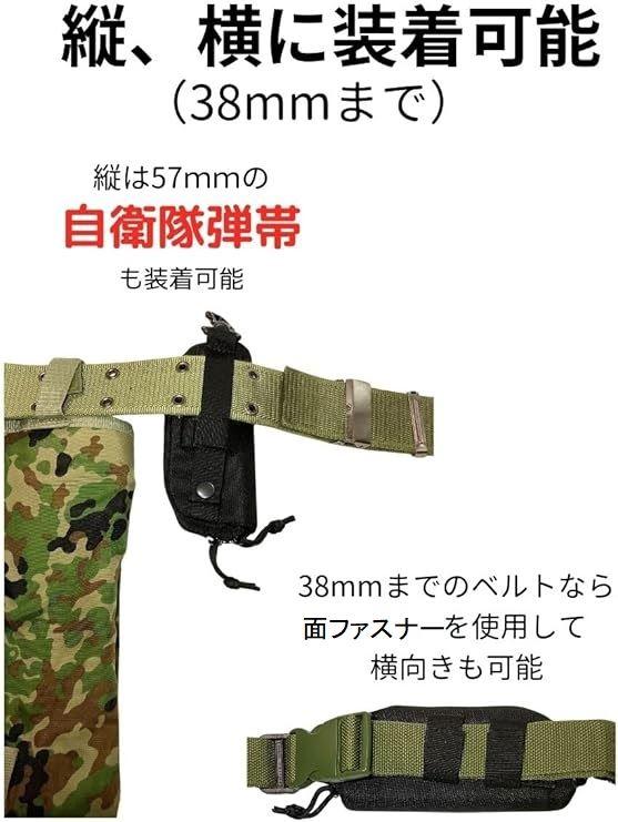 セミハードケースで強固なナイロンの表面に対し内側はやわらかい素材で、裏側には縦のmolleベルト、横の面ファスナーがあって、MOLLE対応のバッグやタクティカルベルトなどに取り付け可能です。