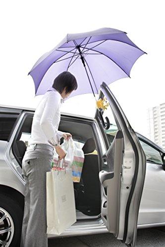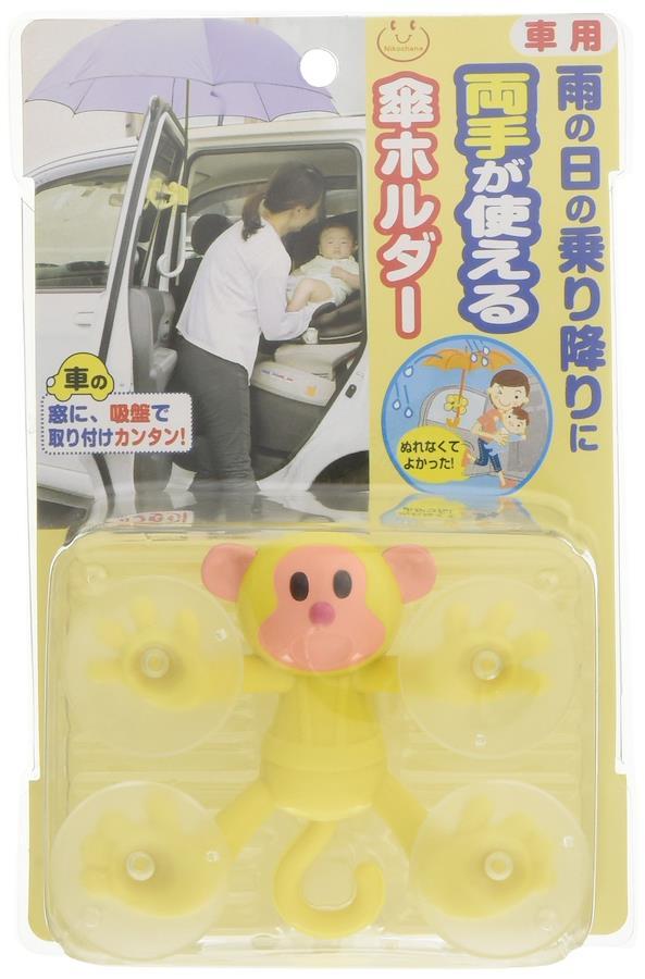・窓の内側に吸盤で取り付けるだけですので、手間がかからない。・傘の芯を押し込むだけで簡単に固定できるので、両手が使えて、雨の日のお子様の乗せ降ろし等に便利。・しっぽはフックにもなっており、ハンドバッグなどの小物を掛けることもできる。 注意:風の強い時はご使用にならないで下さい。