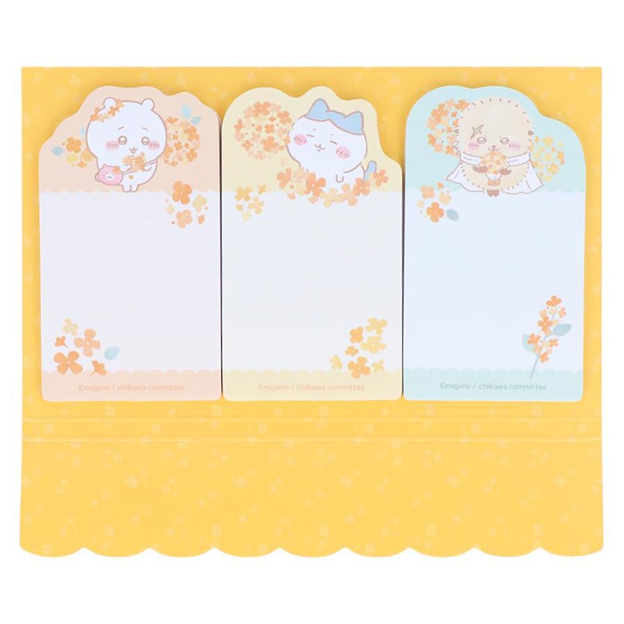 ちいかわ×秋にピッタリな金木犀デザイン【特長】ダイカットの付箋が3つ並んだカワイイ仕様【内容】3柄 各20枚 計60枚【サイズ】130mm×79mm×3mm【材質】紙【免責事項】メーカーによる商品リニューアルに伴いパッケージが変更が行われた場合、新パッケージでお届け致します事ご了承願います。