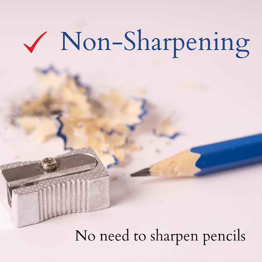 特殊合金芯で、アルミボディ、8角軸です。 メタルペンシル(金属鉛筆)とは芯が黒鉛を含んだ特殊合金で作られており、筆記時に紙との摩擦で生じる黒鉛と合金の粒子が紙に付着することで筆跡となる筆記具です。芯の摩耗が著しく少ないため、削ることなく長い時間書き続けることができます。