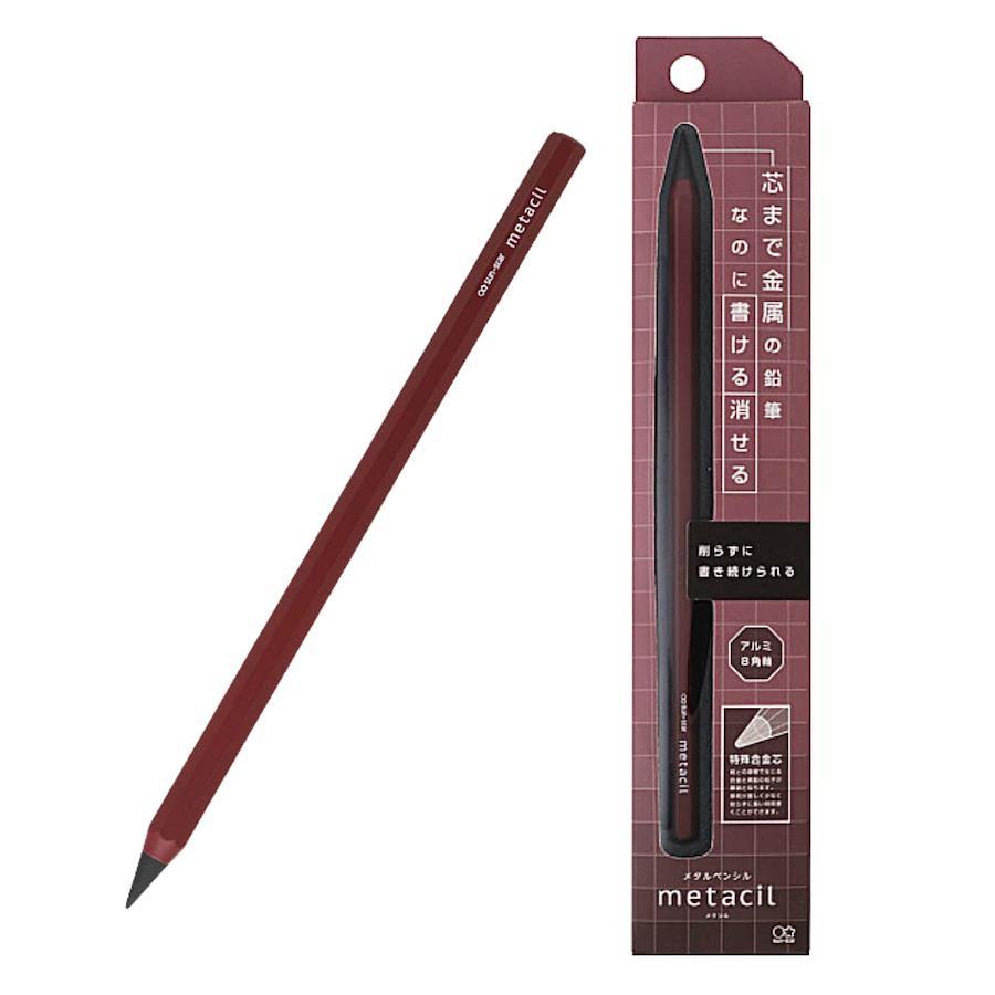 芯まで金属の鉛筆なのに「書ける」「消せる」、メタルペンシル metacil(メタシル)。 カラーは、レッド。