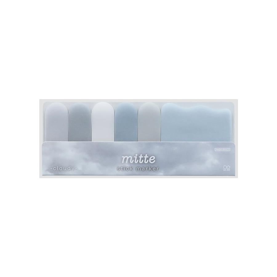 mitte移りゆく空の色カラーダイカット付箋スリム透けるグラシン紙の、[ダイカット付箋スリム mitte]。イメージは、cloudy。大きい付箋は移りゆく空のような形です。同じカラーで揃えてかわいい[魅せる]がコンセプトのステーショナリーシリーズ[mitte/ミッテ]に移りゆく空の色をイメージした淡いグラデーションカラーが新登場!