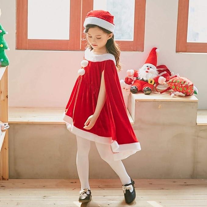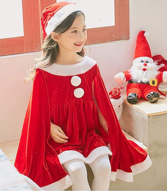 ■商品名[JUNDOMECY] サンタ コスプレ 子供 女の子 かわいい ポンチョ マント 帽子 サンタクロース 赤 緑 サンタ服 ふわふわ キッズ クリスマス コスチューム サンタ コスチューム イベント パーティー 新年会 文化祭 学園祭 (レッド%カンマ% 2XL(140cm))