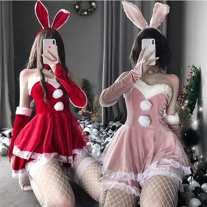 ■商品名サンタ コスプレ Cnstone セクシー 兎耳 ウサギ カチューシャ クリスマス サンタコス 大人 コスチューム レディース 可愛い サンタクロース クリスマスコスチューム パーティー ミニスカサンタ 余興 (XS%カンマ% レッド)