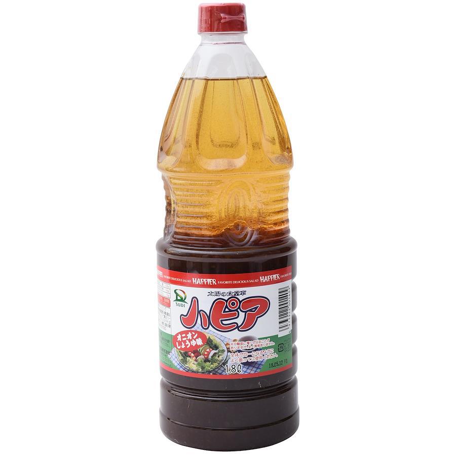 サンダイナーのハピア オニオンしょうゆ味ドレッシングは新鮮な玉ねぎの甘さ、旨味、風味、歯ざわりをそのままたっぷり詰め込むためにダイスカットを施し、こだわりの醤油で香りよくあっさりとした口あたりと深いコクが特徴です。お年寄りからお子様まで、年齢を問わずご愛用いただけるドレッシングです。サンダイナー食品の商品は新鮮な食材のみを仕様しております。「食」を通してみなさまに幸せを感じていただける食品の提供を目指しております。