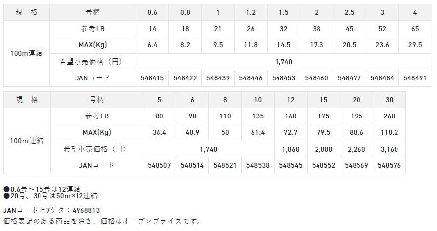 ワイドレンジをカバーする高品質・高強力PEライン素材:ハイクオリティーPEラインカラー/巻量:マルチカラー高強力でローコストな純国産PEライン品質と強度を落とさずにコストを抑えた製法加工により、コストパフォーマンスに優れたPEラインを実現。ストレスフリーな真円構造 より真円を求めた8本組構造。ガイド抵抗が激減してストレスとなる糸鳴りを抑え、スムーズな操作感が持続。 「ディープワン」が活きるシチュエーション視認性の良いカラーローテーションと幅広い号数展開により、ライトゲームから船釣り、大物釣りまでオールジャンルに対応。