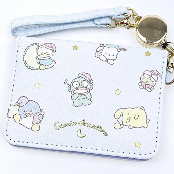サンリオキャラクターズのオープンパスケースです♪ポムポムプリン、ポチャッコ、ハンギョドンなど大好きなサンリオたちが散りばめられています☆リール付なので、バッグに付けて大活躍☆彡