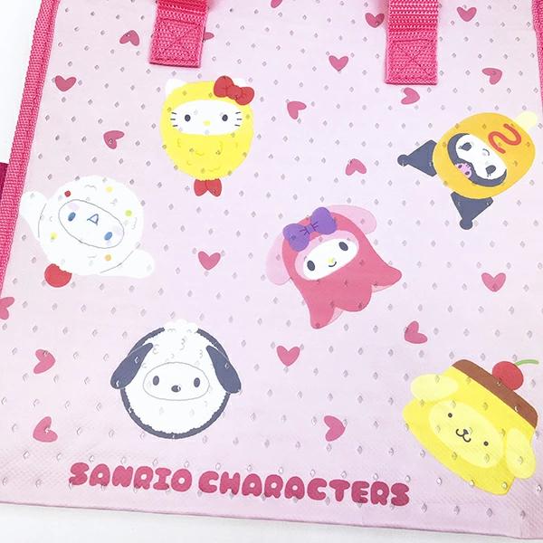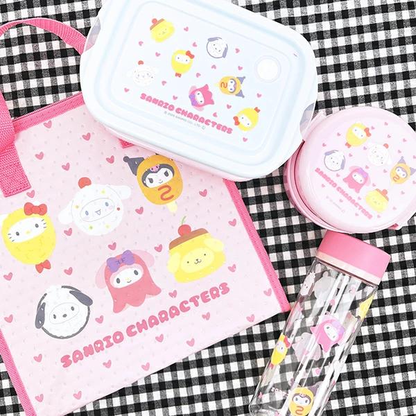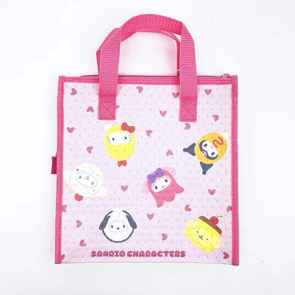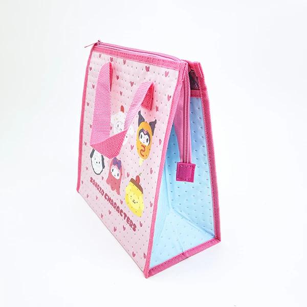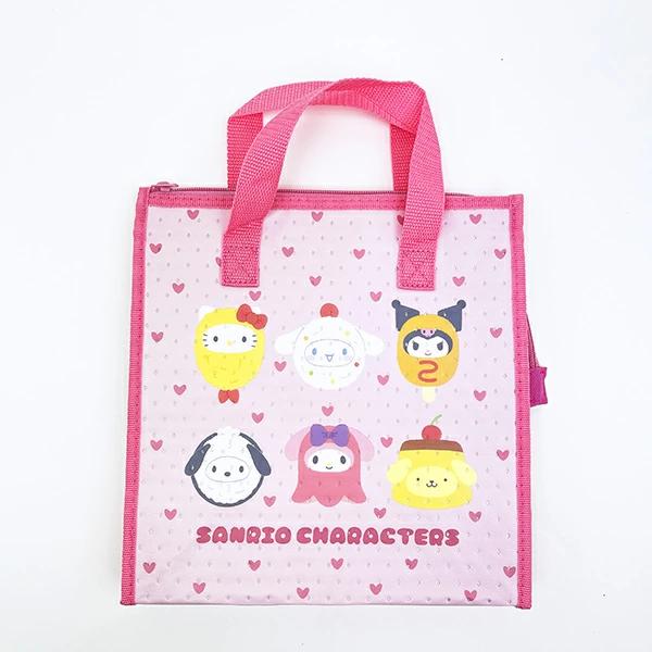 可愛いサンリオのキャラクターがおかずになりきっているデザインのランチバッグです。お弁当箱とマイボトルが一緒に入る便利なサイズ◎マチ幅12cmの少し大きめ♪ちょっとしたお出かけの普段使いとして、おサイフやスマホなどの小物を入れても便利!サブバッグとしても大活躍◎※密封タイプではありません。※