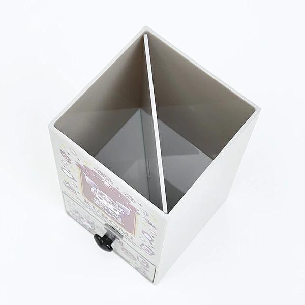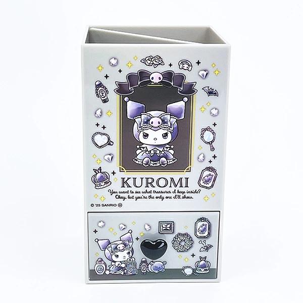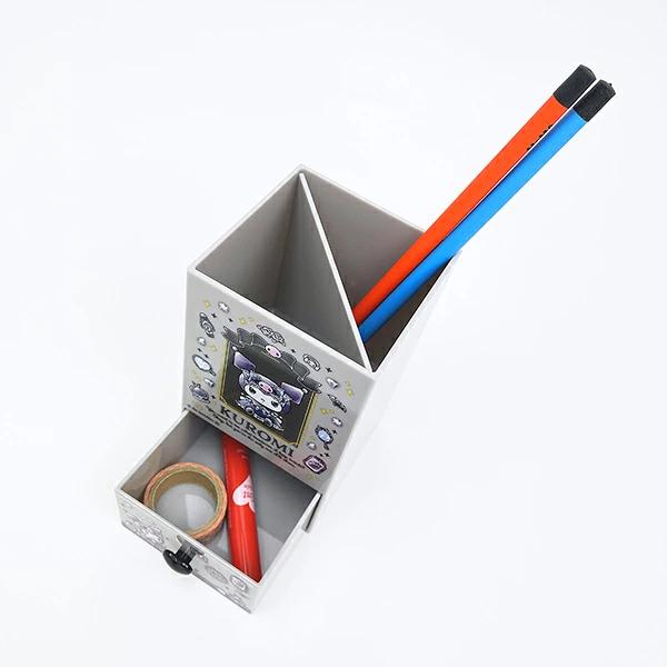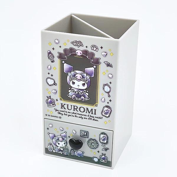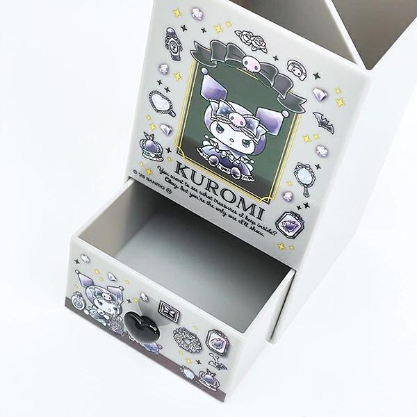 デスク周りで大活躍すること間違いなし!クロミのスクエアペンスタンドです。スタンド部分の仕切り板は取り外し可能でとっても便利☆小物を入れられる引き出し付きで付箋など小さい小物を収納できます♪プレゼントなどにも喜ばれそうです☆彡