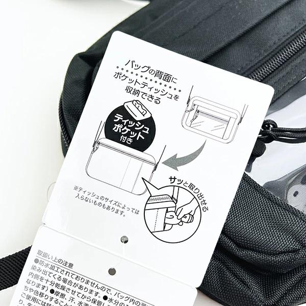 旅行やお散歩などに便利なサンリオのショルダーバッグです♪おでかけに必要最低限の持ち物が入って便利◎バッグの背面にポケットティッシュを収納できるティッシュポケット付き。※ティッシュのサイズによっては入らないものもあります。※ショルダーベルトは長さ調節可能♪肩からかければ両手が空いて楽々♪さりげなくクロミちゃんがいて可愛いですよ~♪【ベルトの長さ:最長123cm】