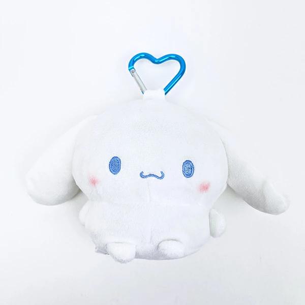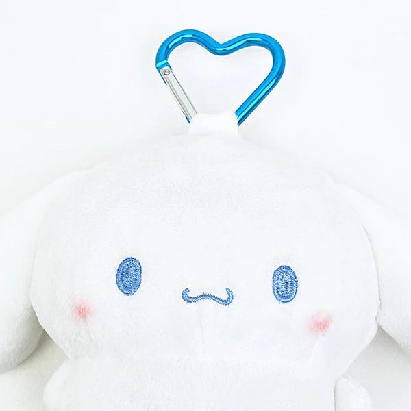 シナモロールのちょっとした小物を入れるぬいぐるみポーチです。サンリオの大人気まるもっちシリーズ♪ハートのカラビナが可愛すぎます☆いつもとちょっと違う表情にも注目です♪