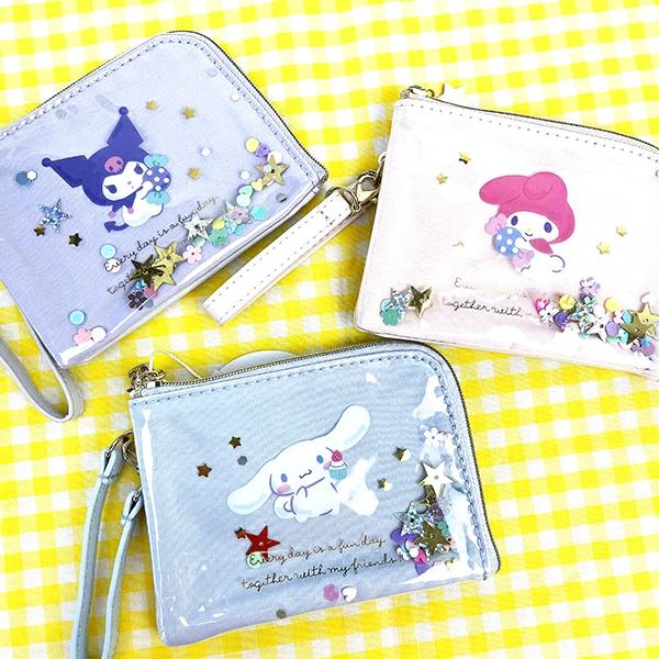シャカシャカ動くスパンコールがかわいいサンリオキャラクターのデイリーポーチです♪ICカードを収納可能◎リール付きなのでカバンやリュックに付けれます♪小銭入れやリップやお薬入れにも収納可能◎