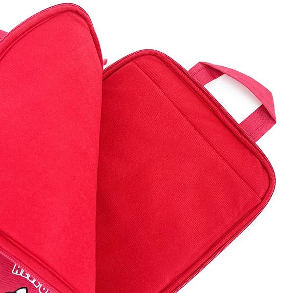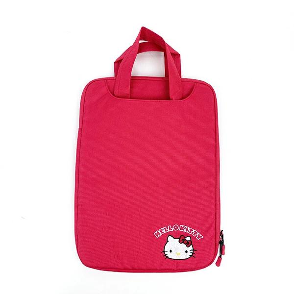 内側はフリース生地+ポリエステル中材で衝撃を吸収。開閉しやすいWファスナー。ファスナー部分は中身が直接ファスナーにあたらない仕様になっています。クッション中材の仕切付き。小物が入れられるオープンポケット。持ち手をポケットにしまうとクラッチバッグ風になる2WAY。背面のベルトでキャリーケースのハンドルに取り付け可能です。【13.3inchまでのタブレット・ノートパソコン】【重さ:165g】