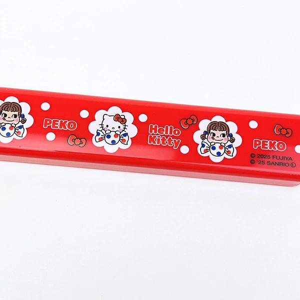 サンリオ ハローキティ×不二家 ペコちゃんコラボデザインの抗菌食洗機対応スライド箸&箸箱セット(名入れスペース付箸入り)です。食洗機OKのお箸とケースのセットです。ケースは、指で引出すスライド式で、衝撃に強く丈夫な構造。また、洗いやすく分解可能になっています。おハシには名前を入れられるスペース付き。ケース用の名前シールも付いてます。【箸の長さ:16.5cm】