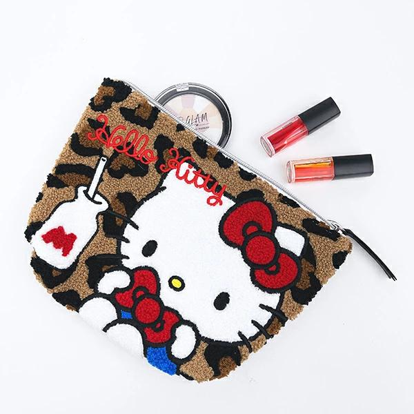 ハローキティ×レオパード柄がとってもキュートなさがらポーチです。メイク用品や小物を入れるのにぴったり☆もこもことしたさがら刺繍を全面に使用した可愛いポーチです☆彡