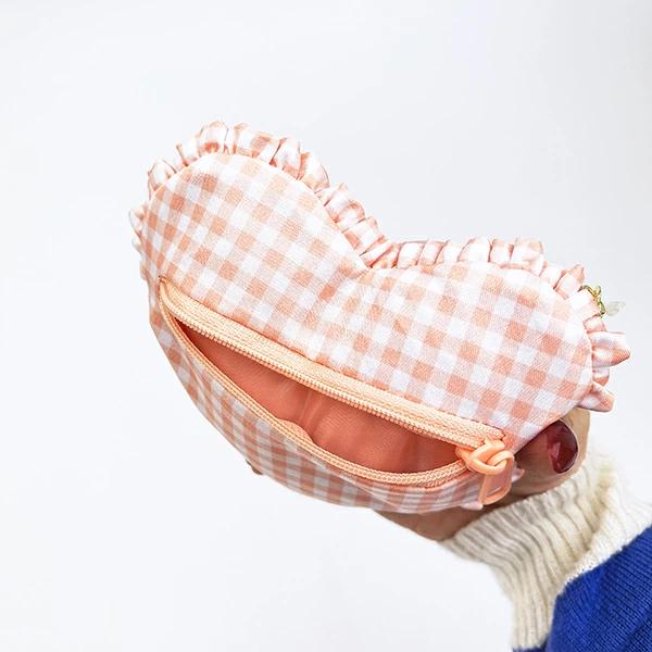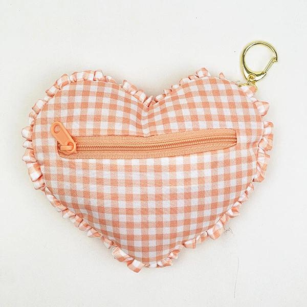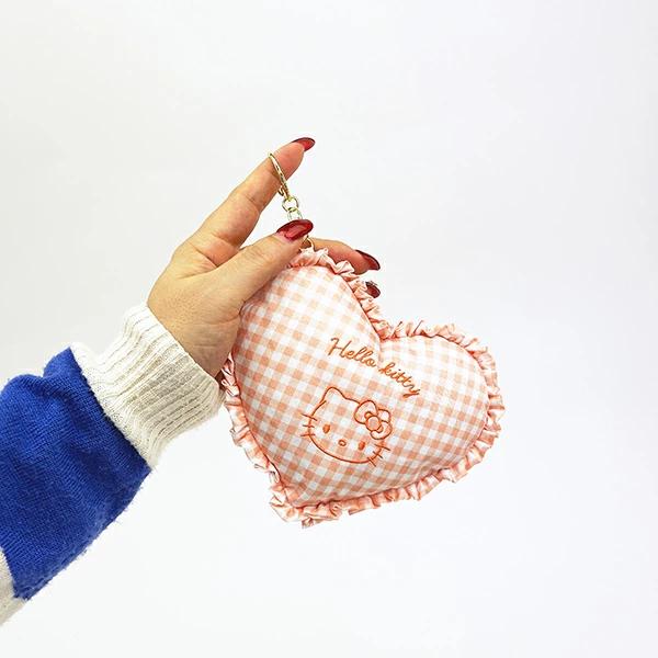 サンリオキャラクターズのハート型クッションポーチになります。 ギンガムチェックのデザインが可愛さ増し増し♪ ポーチになっていて、小さな指輪やリップなど収納もしていただけます☆彡