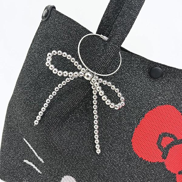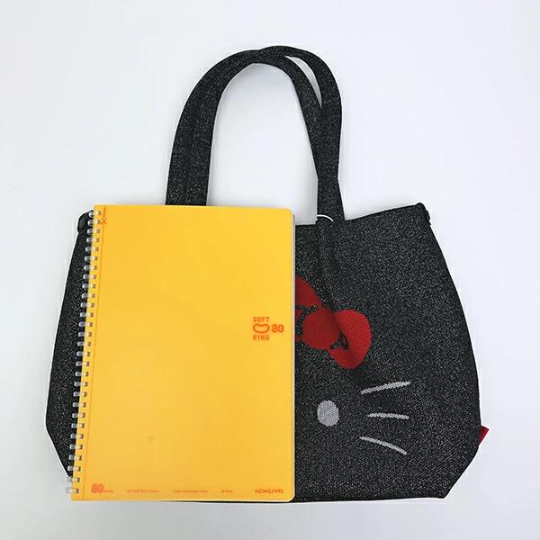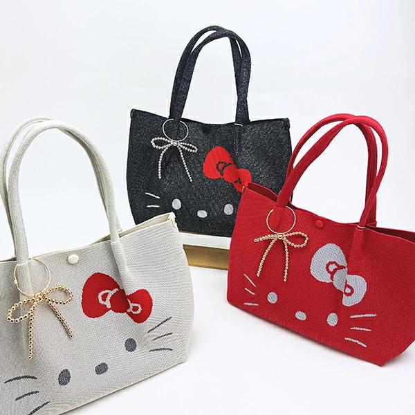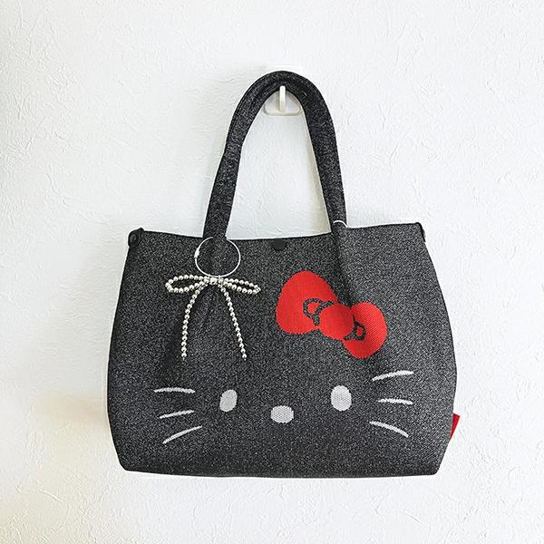 ハローキティの素材をフル活用したルートート「ルフル」。お財布、ボトル、A5ノート、ポーチなどがらくらく収納できて見た目以上のたっぷり容量がgood♪キラキララメ入りの糸で編まれた本体はサラリとした手触りでニットなのにハリがあり、自立するのも魅力です☆取り外し可能なリボン型のチャーム付きが嬉しいポイント♪きらめくラメとリボン、これからのホリデーシーズンにもぴったり☆持っているだけで華やかになること間違いなしです☆彡