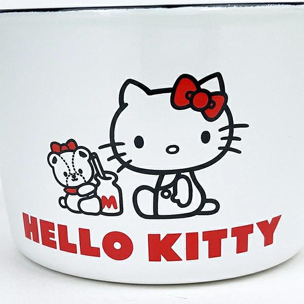 ハローキティ&タイニーチャームが可愛く描かれたシンプルで使いやすいホーローメジャーカップです。金属のもつ強度と熱伝導の良さ、ガラスの非吸着性や美しさなど、金属とガラスの良さを併せ持つホーロー製。是非ハローキティ&タイニーチャームと少しレトロな落ち着いた生活をお楽しみください♪【容量:450ml】