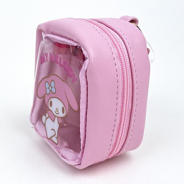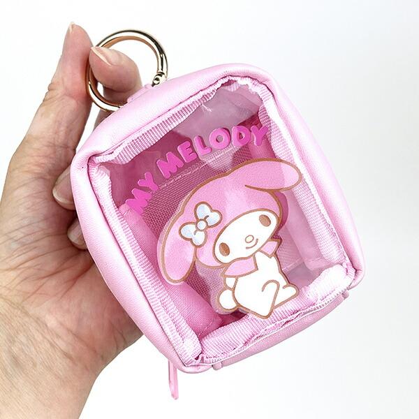 サンリオのカラビナ付きミニポーチ。カパッと開き、中には仕切りも付いていて使いやすさも◎丸いカラビナもポイントです♪