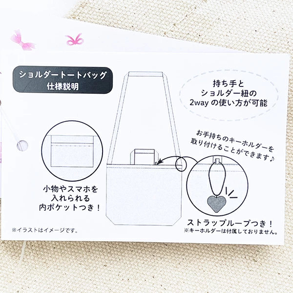 イラストレーターのなつめみくさんとムービックが手がけるイラストブランド「DOLLY MIX PETIT(どーりーみっくす・プチ)」と、マイメロディ・マイスウィートピアノがコラボのキショルダートートバッグです。持ち手とショルダー紐の2WAYの使い方が可能◎お手持ちのキーホルダーを取り付ける事が可能!小物やスマホを入れられる内ポケットつき!同シリーズもございますので揃えてみませんか♪【ショルダー紐:95cm(調整不可)】