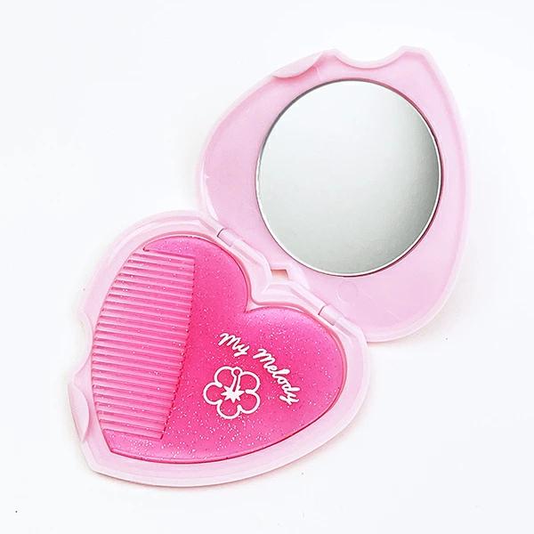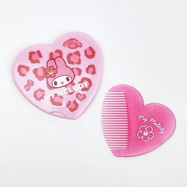 可愛いサンリオのミラーコームです。ヒョウ柄デザインでよーく見るとキャラクターの形が!?コスメポーチに収納できるサイズ感◎