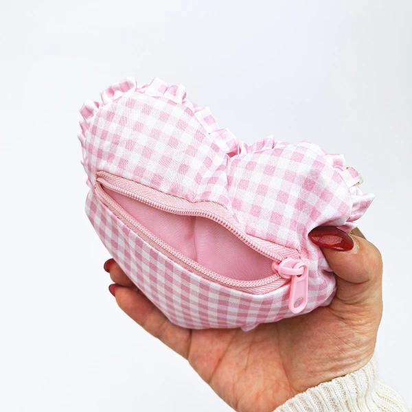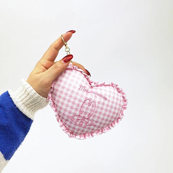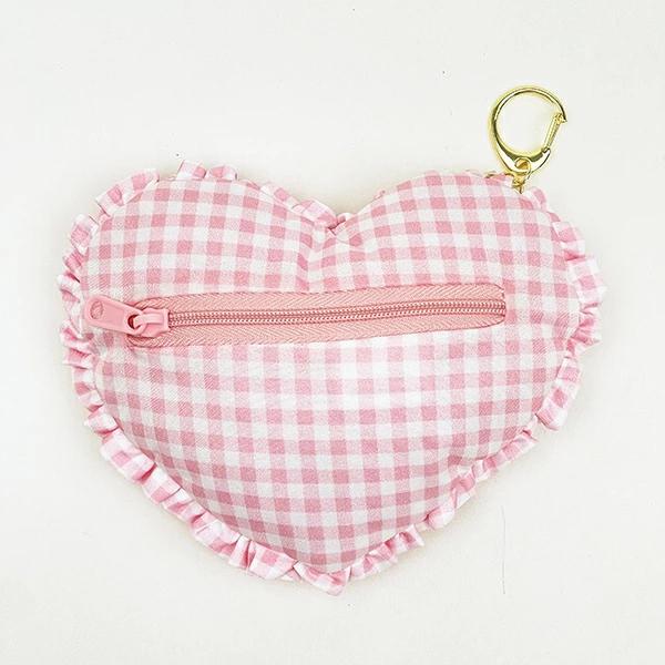 サンリオキャラクターズのハート型クッションポーチになります。 ギンガムチェックのデザインが可愛さ増し増し♪ ポーチになっていて、小さな指輪やリップなど収納もしていただけます☆彡