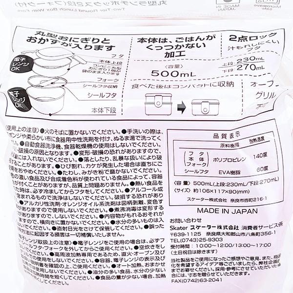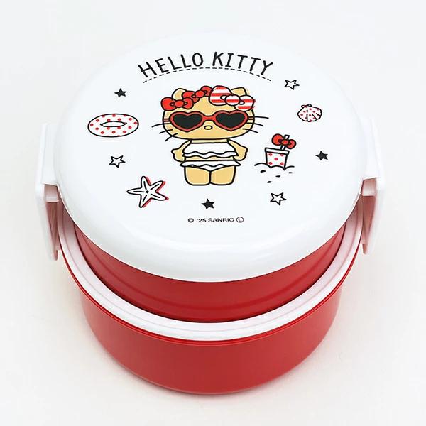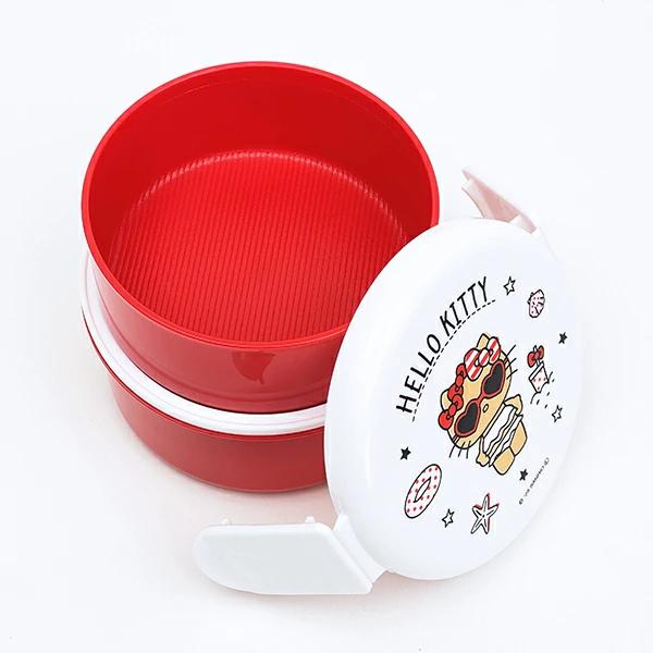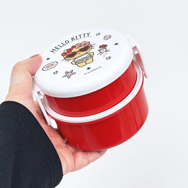 ランチボックスです。丸型おにぎりとおかずが入ります。2点ロックで汁も漏れにくい☆彡 食べた後はコンパクトに収納可能!箸セットとお揃いデザインで揃えたくなる可愛さ☆彡 小さめランチボックスを探している方にピッタリ♪キティちゃん好きにはたまらない品になってます!! ※食洗機 使用不可! 電子レンジ使用可◎【容量:500ml(上段230ml、下段270ml)】