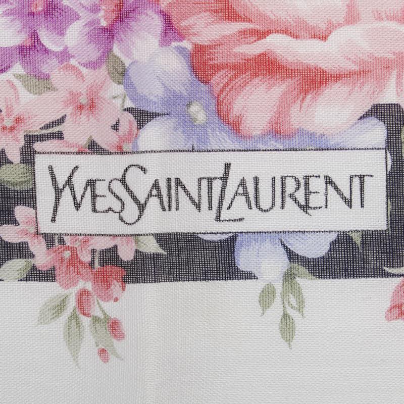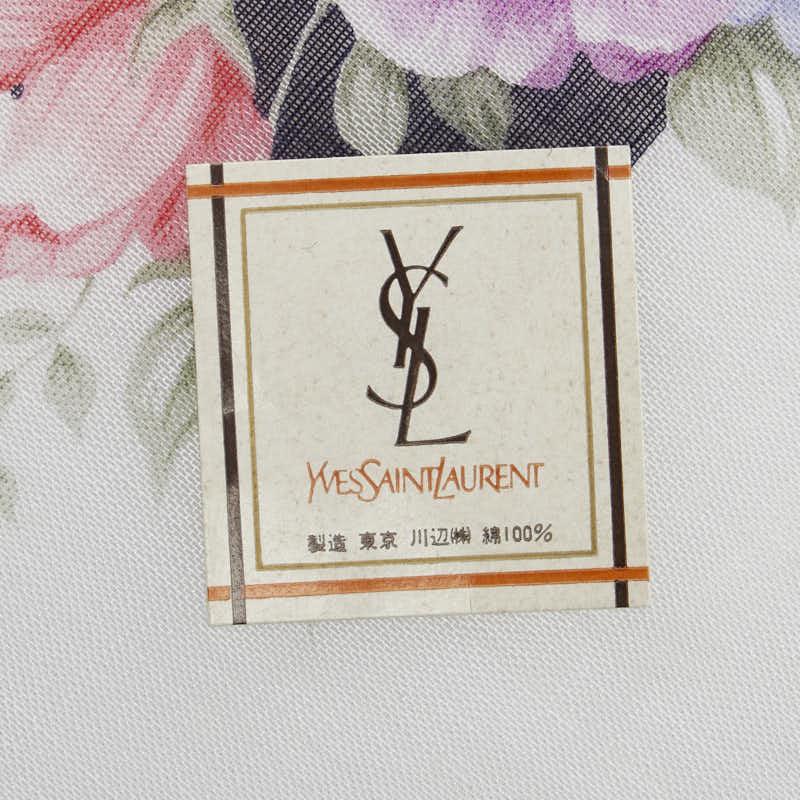 サンローラン フラワー 花柄 スカーフ ハンカチ ホワイト マルチカラー コットン レディース SAINT LAURENT 【中古】