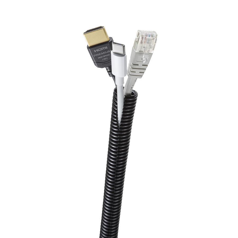ケーブル配線をまとめて、すっきりできます。背割れタイプで、スリットからケーブル両端を必要な位置から出すことができます。