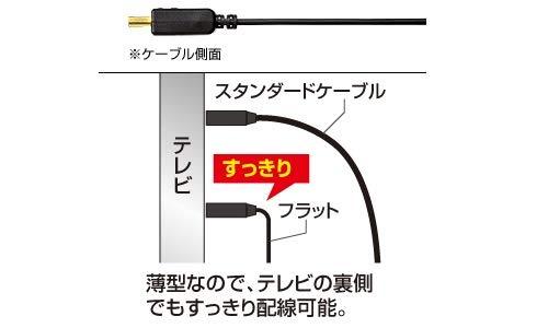 フラット(薄型)ケーブルなので、機器の背面の狭いスペースでも配線が可能なので隙間やカーペット下などへもすっきり配線ができます。