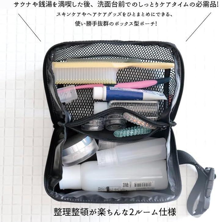 いつものセットを持ってきたら何だかんだでごちゃごちゃで使いにくい時に、便利なボックス型バッグが登場..サ活BOX入浴バッグは、歯ブラシ、歯磨き粉、ヘアブラシ、スキンケアボトル、コンタクトなどなど、そんないつものアイテムが丸ごと収まって開けたらそのまま使えてしまうBOXなのです。