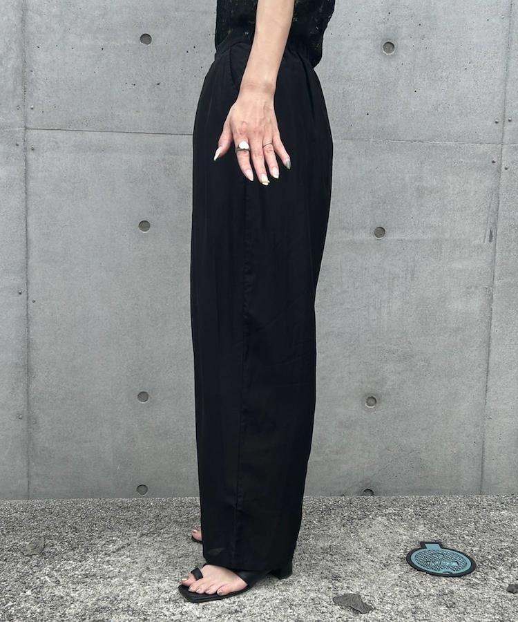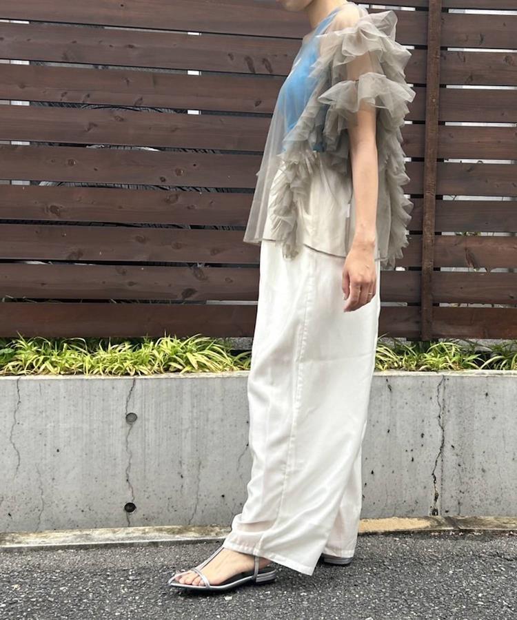 ラインを拾わないゆったりシルエットに、軽やかな程よいシアー感の素材を使用することで