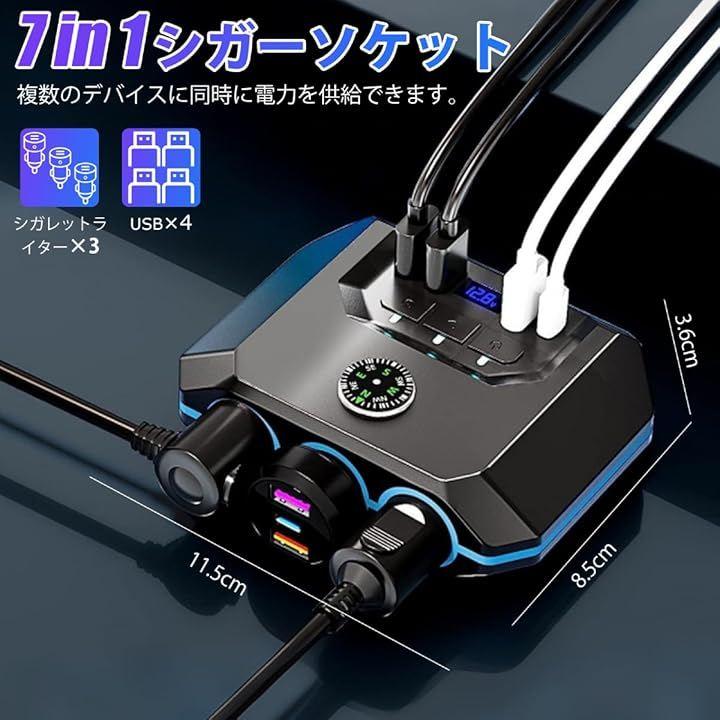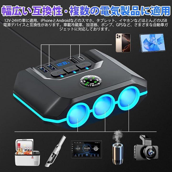 「多機能充電ソリューション」3連シガーソケットと4つのUSBポートを搭載しており、GPS、車用掃除機、車載冷蔵庫、スマートフォン、タブレットなど複数の機器に同時に給電できます。