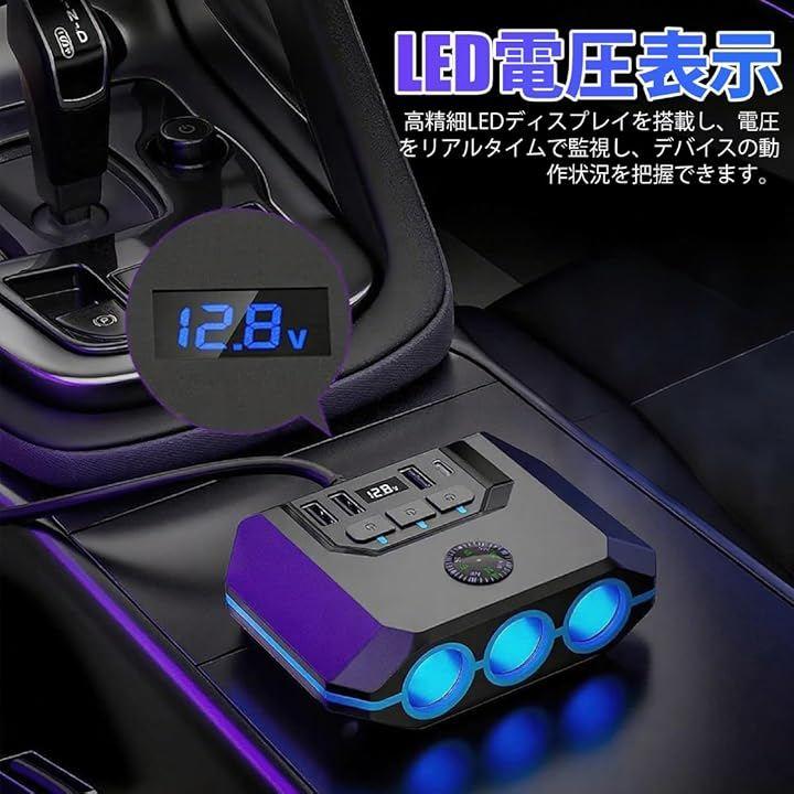 「電圧表示・複数の保護機能搭載」車 usb シガーソケット 急速充電には高精細LEDディスプレイを搭載しており、通電後は電圧をリアルタイムで表示します。