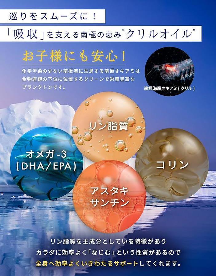 「クリルオイル」クリルオイルは、DHA、EPA、コリン、リン脂質、アスタキサンチンが含まれているオイルです。