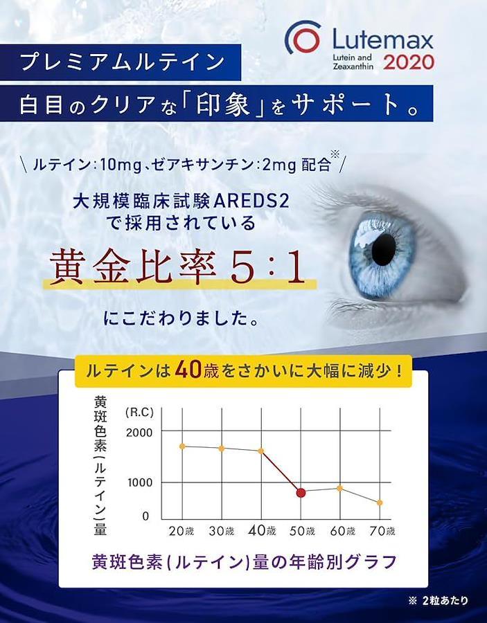 「ルテマックス2020もしっかり配合」フリー体ルテイン&ゼアキサンチンが5:1のプレミアム原料。