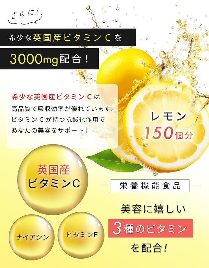 「希少な英国産ビタミンC」英国産ビタミンCを3,000mg配合。