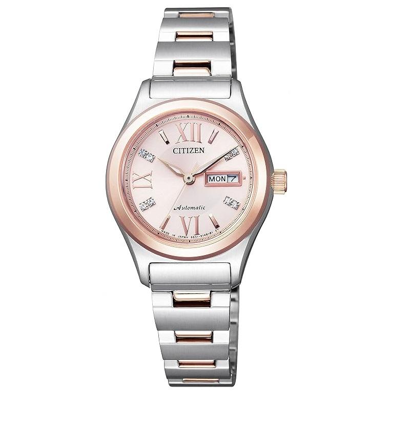 ブランド CITIZEN型番 PD7166-54W型番 PD7166-54W発売年 2016ケースの形状 円形風防素材 サファイアガラス表示タイプ アナログ留め金 三ツ折れプッシュタイプ中留ケース素材 ステンレス鋼ケース直径・幅 27 millimetersケース厚 11.3 millimetersバンド素材・タイプ ステンレス鋼バンド幅 13 millimetersバンドカラー ピンクゴールド文字盤カラー ピンクカレンダー機能 デイデイトその他 機能 夜光インデックスムーブメント 日本製自動巻きメーカー保証 1年間保証