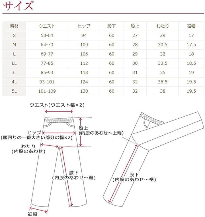 「5Lサイズ」ウエスト101-109cm, 股上32cm, わたり幅38cm, ヒップ130cm, 股下60cm, 裾幅19.5cm