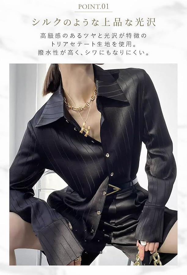ポイント(1):女性らしさとカッコ良さ溢れる上品なツヤと光沢感が魅力なストライプシャツ。