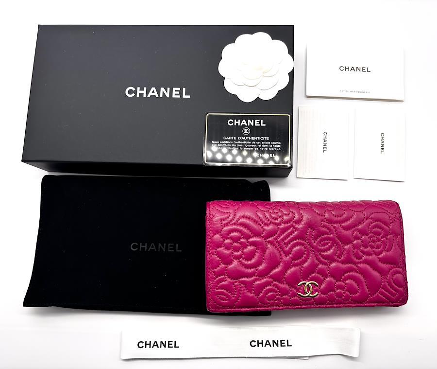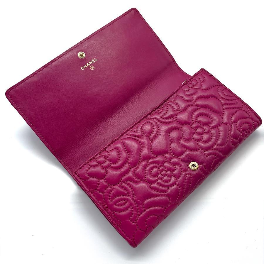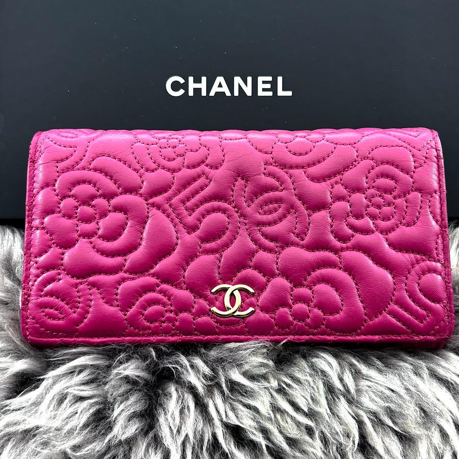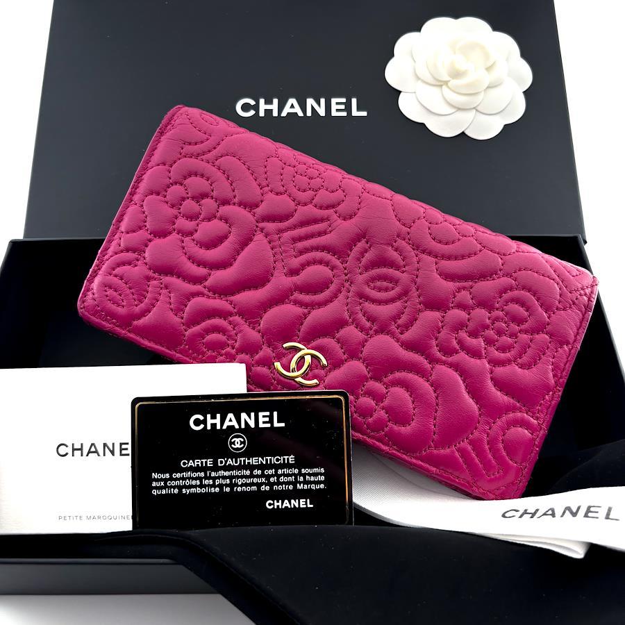 ★商品詳細★●商品名 シャネル カメリア No.5 ステッチ フラップ 長財布●色 ピンク、マゼンタ●付属品 箱、ギャランティカード、ケアカード、リボン、カメリア●素材 本革、ゴールド金具●サイズ 約19.5×10.5×3.5㎝●シリアルナンバー 26528470●シリアルシール付●仕様 ボタン開閉式、カードポケット×12、小銭入れ×1、札入れ×2、ポケット×2