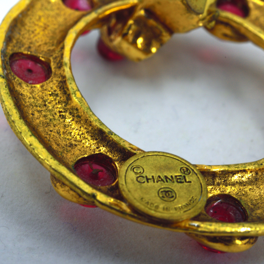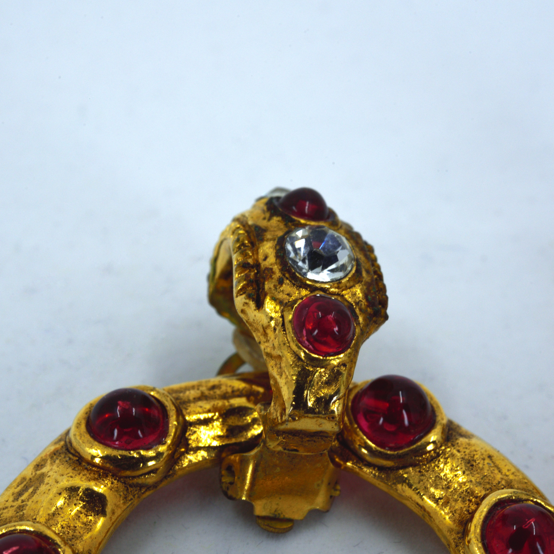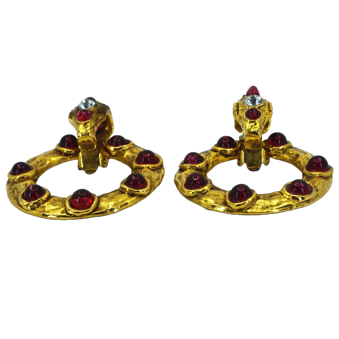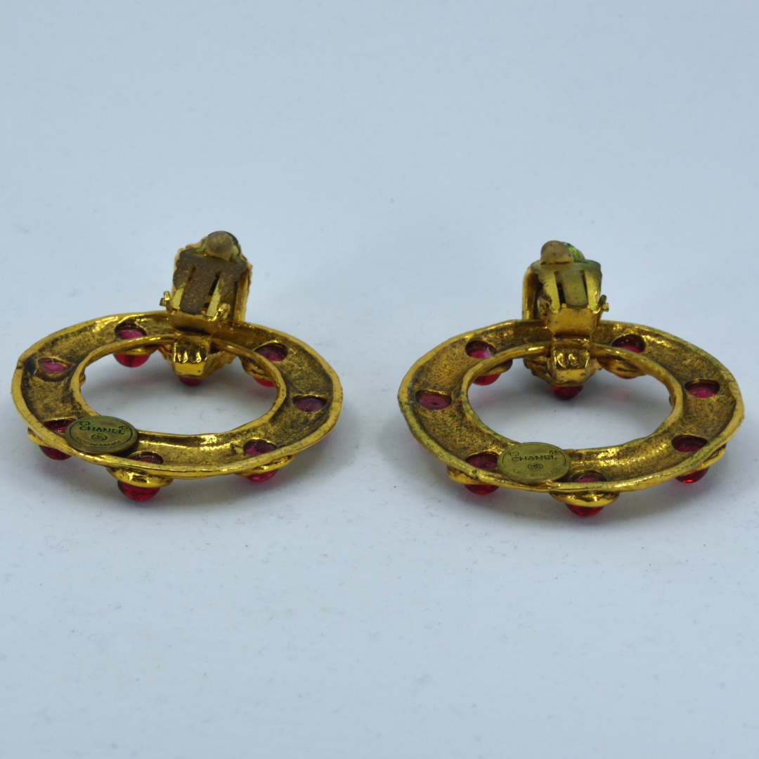 【アイテム名】シャネル ビンテージ イヤリング 大きい丸型 赤石 ガラス