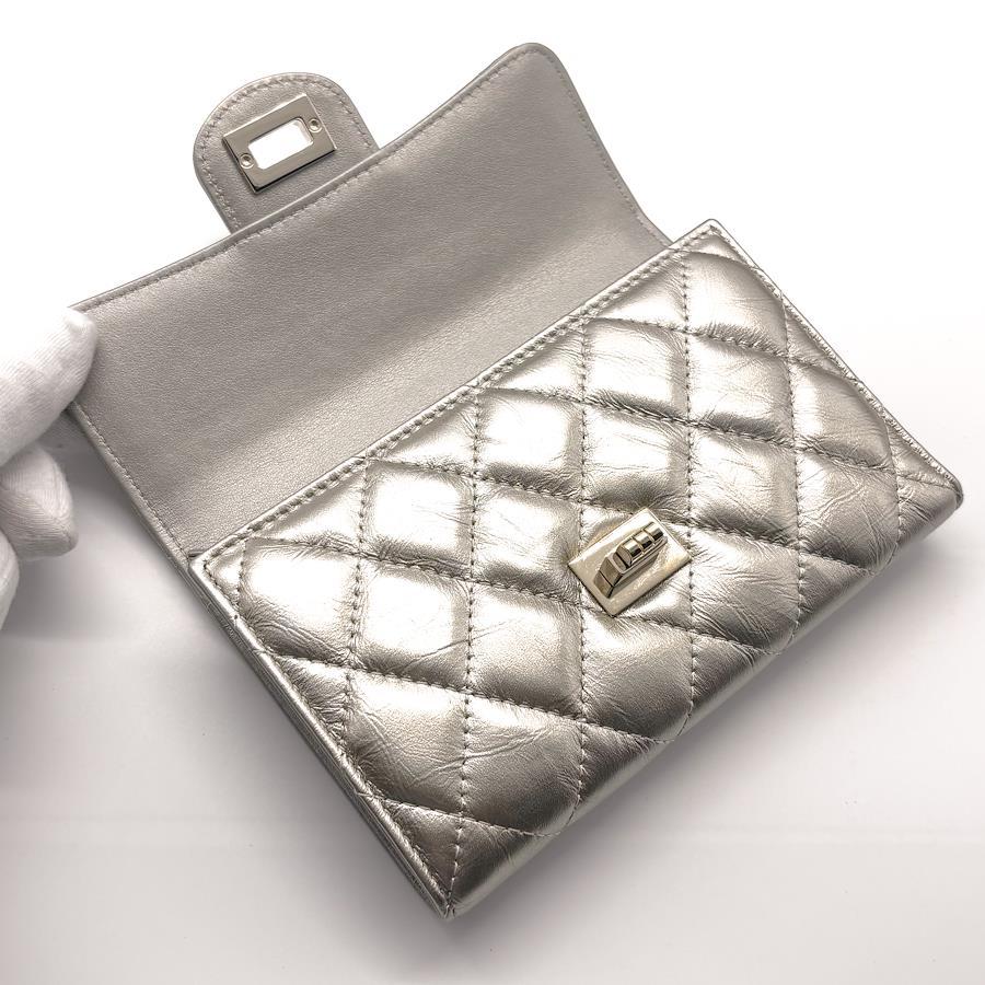 ロゴマークが目立たず見る人が見ればわかる、2.55シリーズニュアンス溢れるシワ加工のメタリックレザーが大人で気品のある貴方をより一層引き立ててくれます