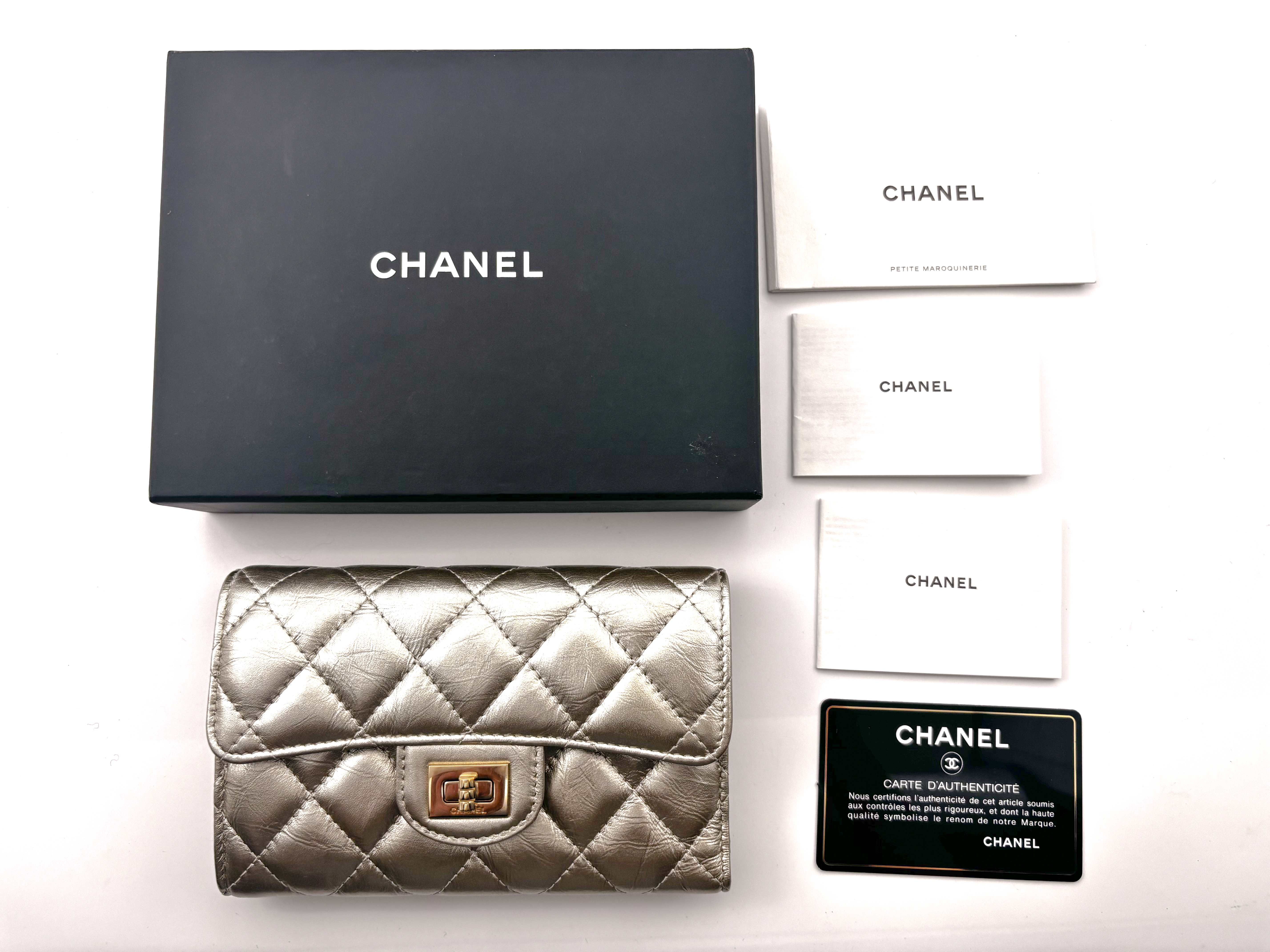 ★商品詳細★●商品名 シャネル マトラッセ 2.55 ターンロック 三つ折 財布●色 シャンパンゴールド●付属品 箱、ギャランティカード、ケアカード●素材 本革、ゴールド金具●サイズ 約15.0×10.0×3.5㎝●シリアルナンバー 30364624●シリアルシール付●仕様 ターンロック開閉式、カードポケット×5、小銭入れ×1、札入れ×1、ポケット×2